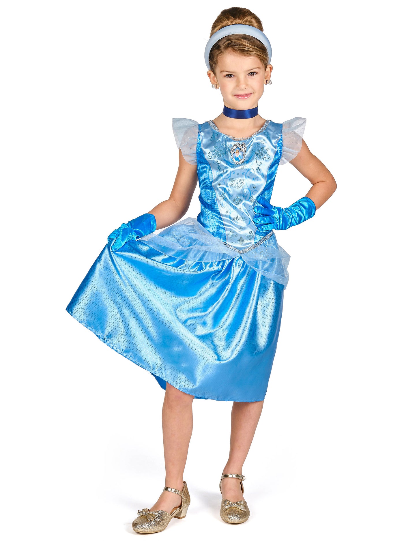 Този костюм на Cinderella Classic за момиче е под официален лиценз на Disney. Съдържа само рокля. Роклята в сини и бели тонове е със средна дължина и няма ръкави. Той е декориран с тюл -тюл лети в рамото и размера. Сребърните свързващи вещества ще завършат предната част на тоалета. Той също има модели по темата за роялти в бюста. Този комплект ще бъде идеален за вашето облекло за принцеса по повод карнавала или за рождения ден на вашето дете!