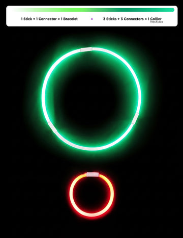 Включва: 35 фосфоресцентни тръби , 25 закопчалки , 10 дръжки за очила , 5 щипки за центъра на очилата , 5 сламки