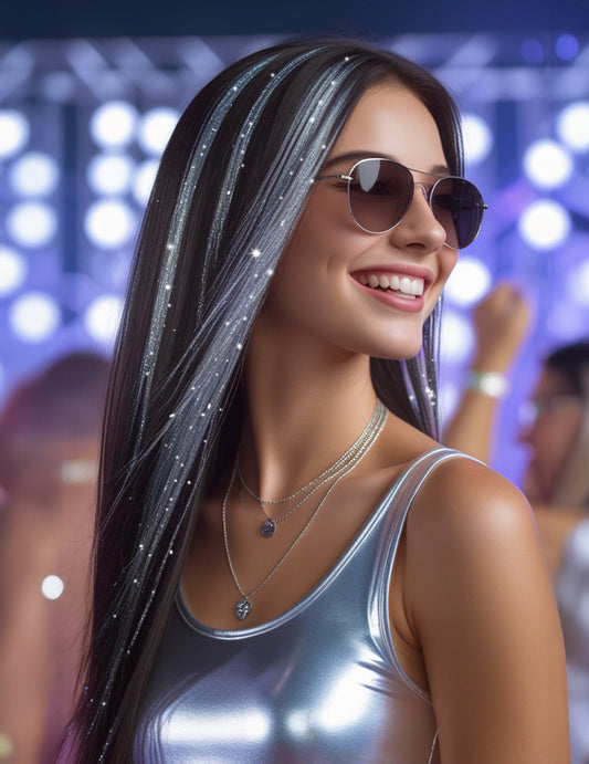 - Блестящи бижута : Гривни, пръстени или колиета за допълнителен блясък.