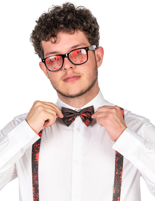 Включва: 1 чифт окачващи, 1 папийонка, 1 чифт очила