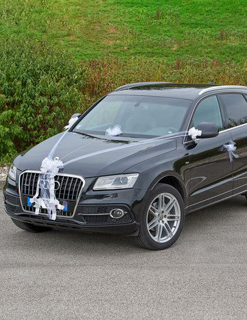 Комплект за декорация на сватбена кола с тюл и панделки