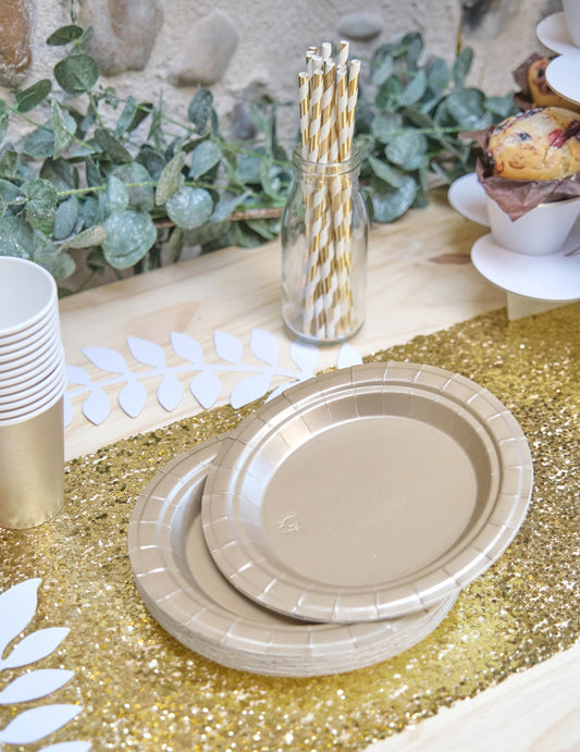 Внесете празнична и елегантна нотка на вашите събития с нашата колекция отчинии за еднократна или многократна употреба, предназначени да красят вашите маси и да се адаптират към всички видове празненства. Идеален за рождени дни, НА тематични партита, сватби, или дори пикници, тези чинии съчетават практичност, естетика и качество.