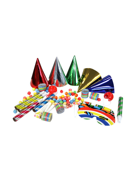 Включва: 10 шапки, 10 свирки, 10 духалки, 30 серпентини, 100 топчета