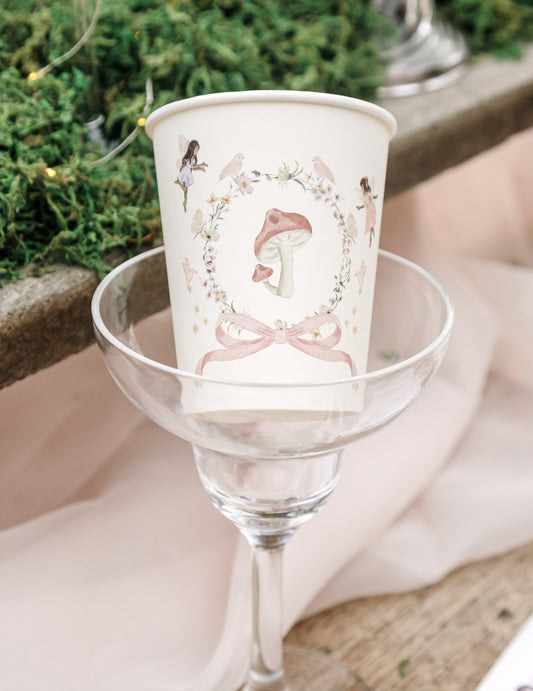Изчерпано6 картонени чаши с тематика на феи, бели и пастелно розови, 255 мл, за рожден ден
