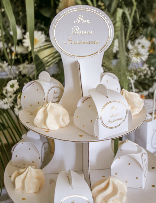 Изчерпано8 картонени контейнера за първия ми рожден ден, пълни със златни точки.