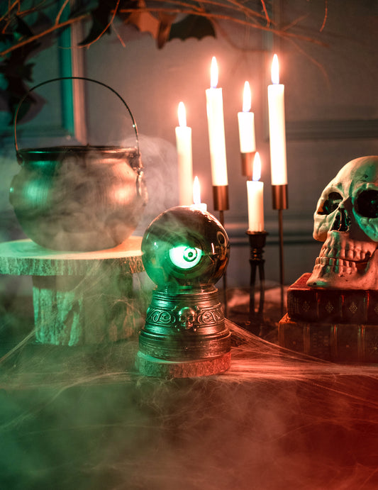 - Светлинни ефекти : Мигащи LED свещи, UV светлини и прожектори за призрачна игра на сенки.