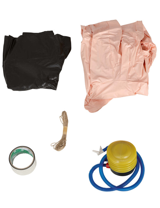 Включени: Фалшив надуваем труп, пластмасова торбичка, лепилна лента, помпа, струна