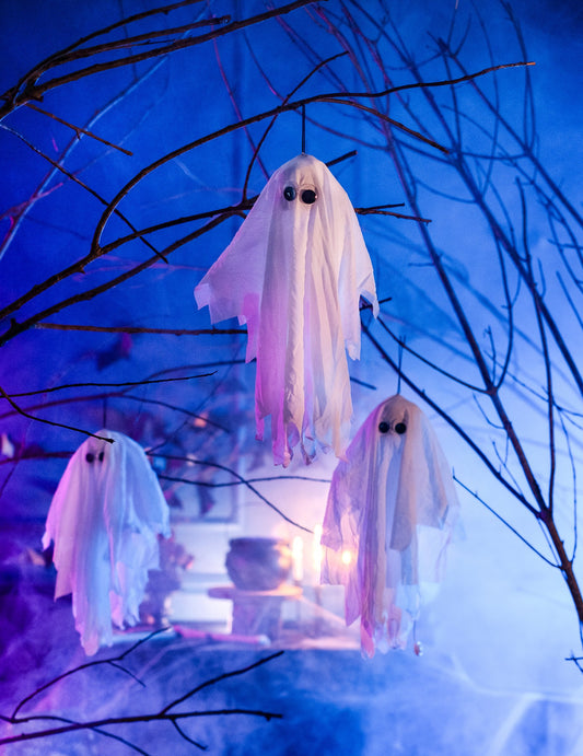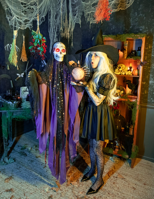 - Светлинни ефекти : Мигащи LED свещи, UV светлини и прожектори за призрачна игра на сенки.