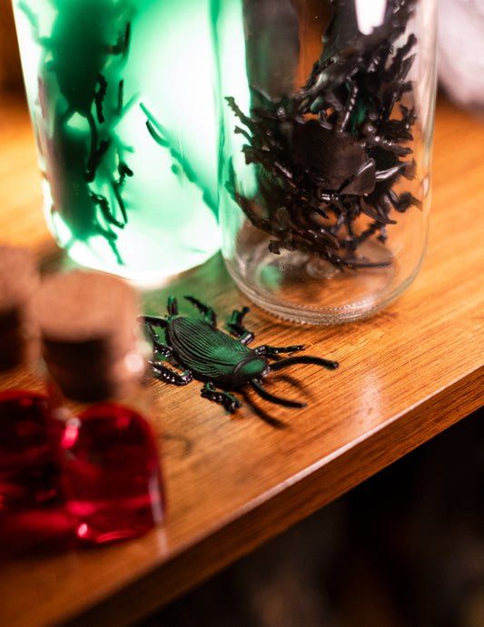 - Страшни малки декорации : Мини тикви, пластмасови паяци или черепи за украса на всеки ъгъл на масата.