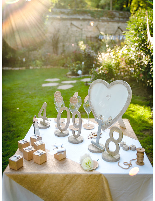 Включва: 1 златна рамка за книги, 60 малки сърца
