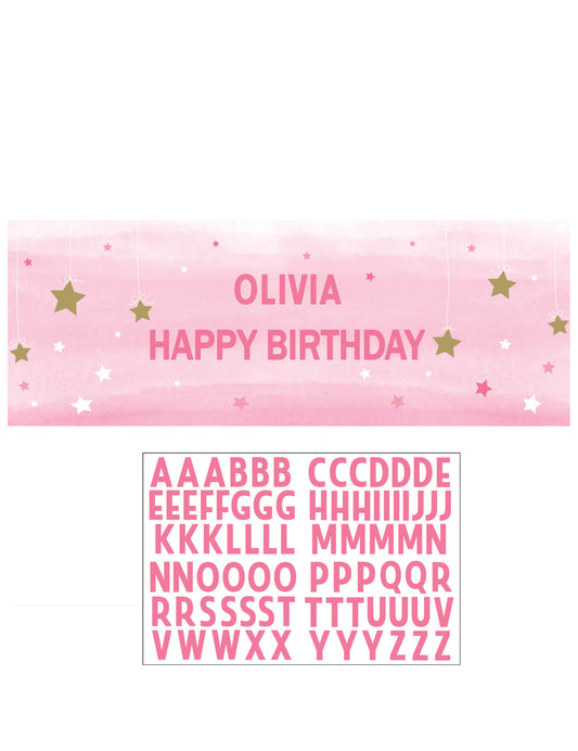 ИзчерпаноПерсонализируем розов банер 50 x 152 cm със самозалепващи се букви