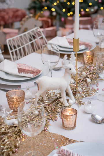 4 стъклени държача за свещи в розово злато с огледален дизайн 6 x 3 cm за Коледа