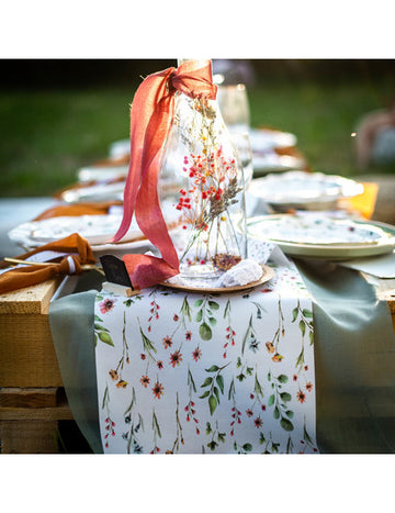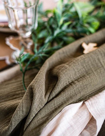 Пътека за маса от памучен мръсен плат в цвят каки 30 cm x 3 м бохемски стил