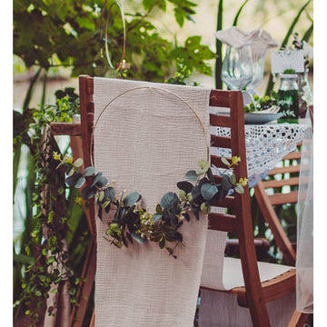 - Селски и бохемски : Декорации от дърво, юта, макраме и естествена зеленина.
