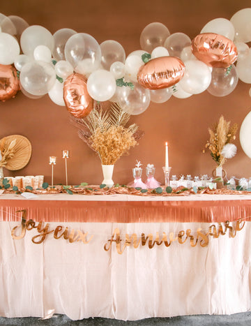 Комплект с ковчег от 70 балони от розово злато с евкалипт и розов
