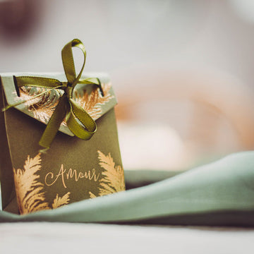 Изчерпано10 каки картонени кутии с пампас мотив, златна фолио и дизайн "Love Wedding" и панделка