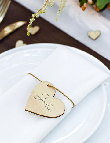 Изчерпано10 дървени картички с места във формата на сърце (6 x 5 см) cm с връв