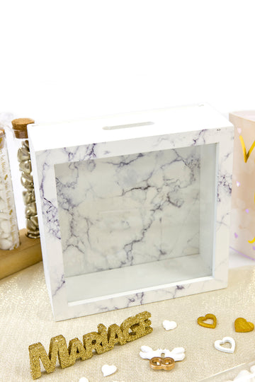 ИзчерпаноДървена кутия за съобщения с ефект на бял мрамор, 18 x 7 cm за сватба