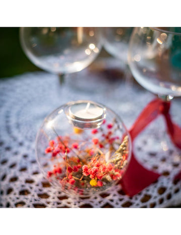 ИзчерпаноПрозрачен свещник с цветни сухи цветя, 11 x 10,5 см cm селска сватба