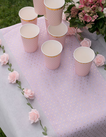 10 бели и розово-златисти картонени чаши "Just Married", 27 cl, романтични и шикозни