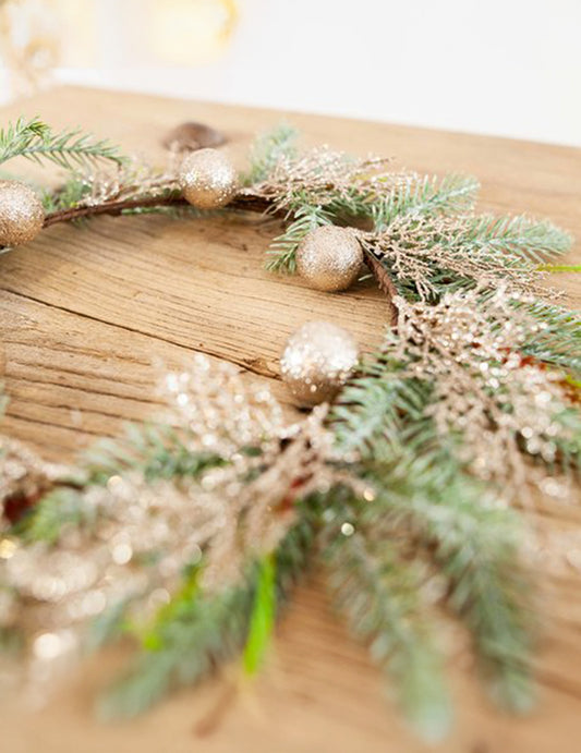 ИзчерпаноКоледен венец за елха с топки с брокат на шампанско 45 cm за врата