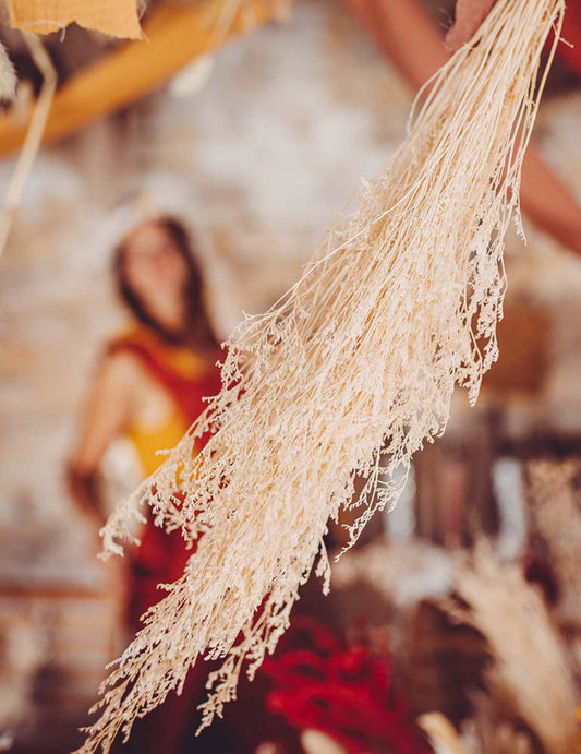 100 златни конфети от пампаска трева и памучни цветя за кръщенета