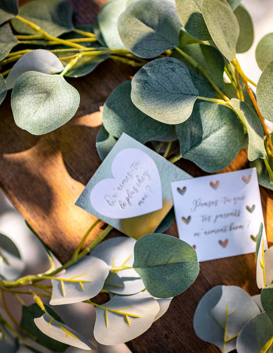 10 бели картички за места с малко златно сърце 8 x 4 cm релефно