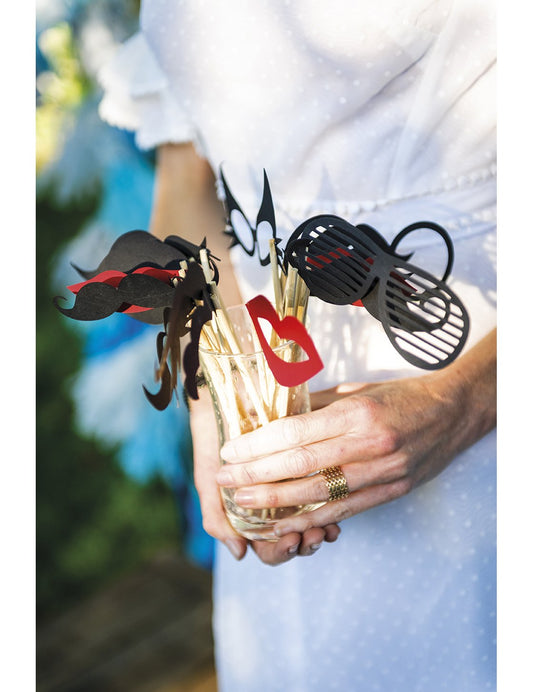 Включва: 35 фосфоресцентни тръби, 25 закопчалки, 10 клона от очила, 5 връзки за центъра на очилата, 5 сламки