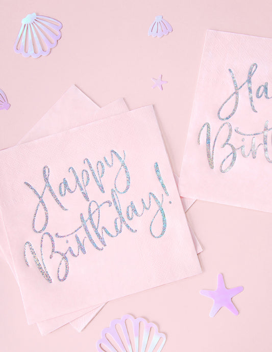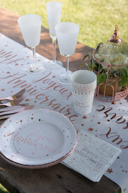 20 serviettes papier joyeux anniversaire rose gold à motifs étoiles roses