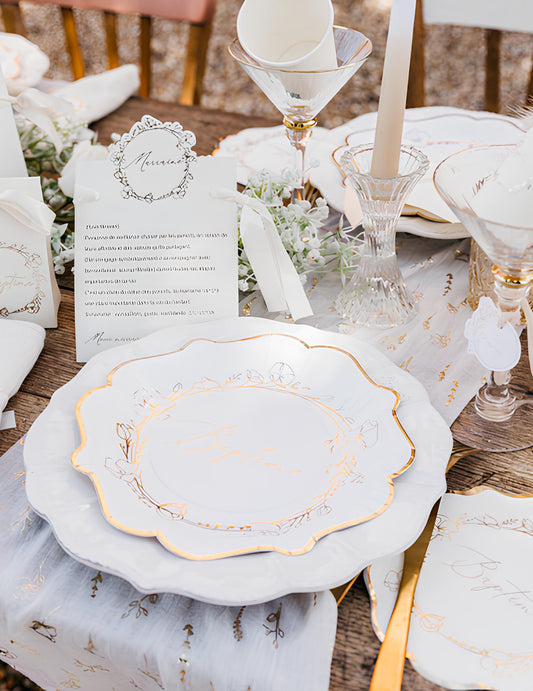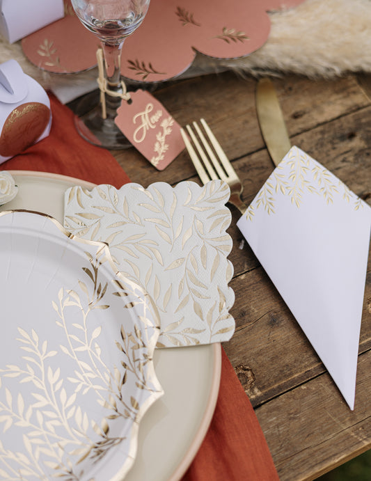 Изчерпано20 коктейлни салфетки от хартия в бяло и златисто с шарка на фестончета