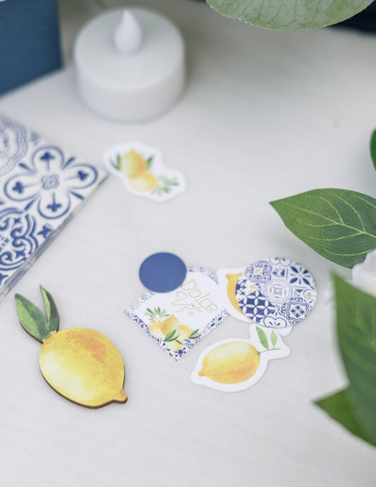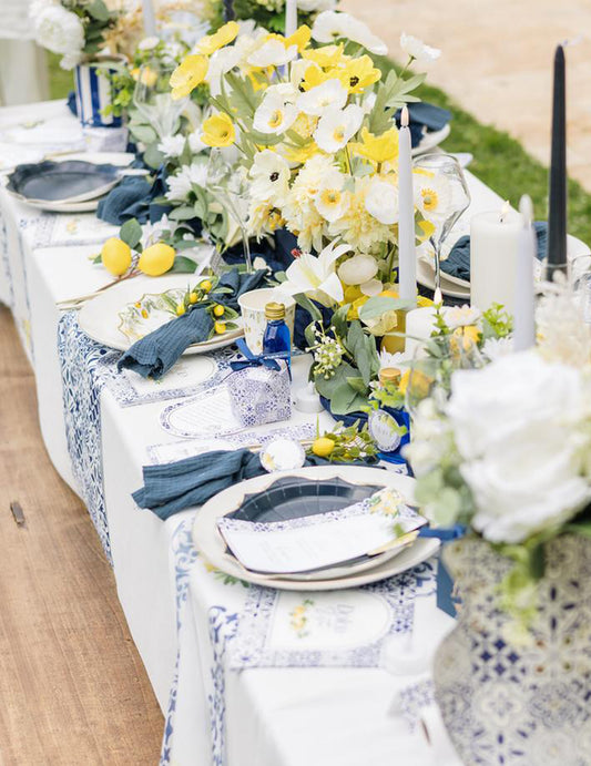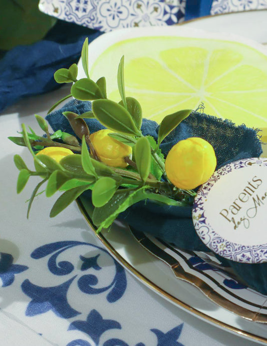 8 картонени купички с форма на лимон в кралско синьо, жълто, бяло и златно, 13,5 см, със средиземноморски флорален мотив