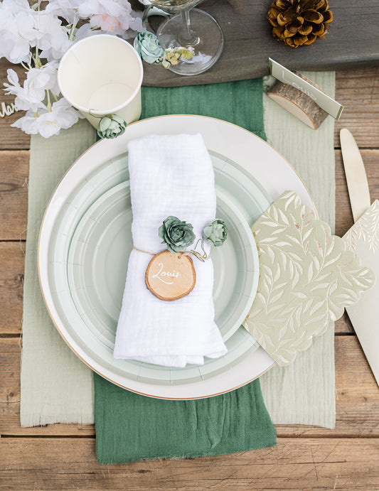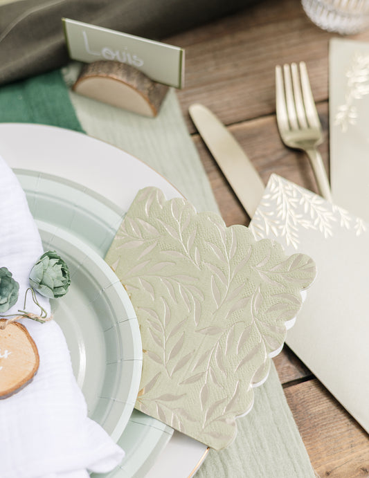 20 хартиени коктейлни салфетки в цвят салвия и златист цвят, 24 x 24 cm с назъбени ръбове