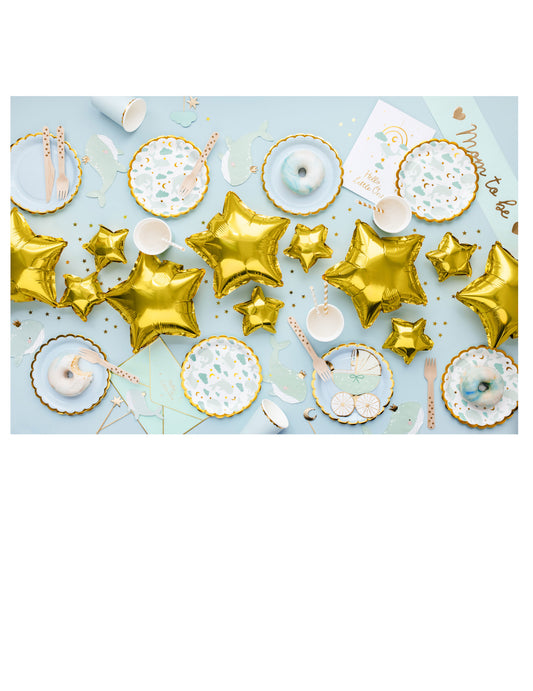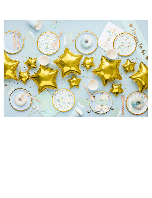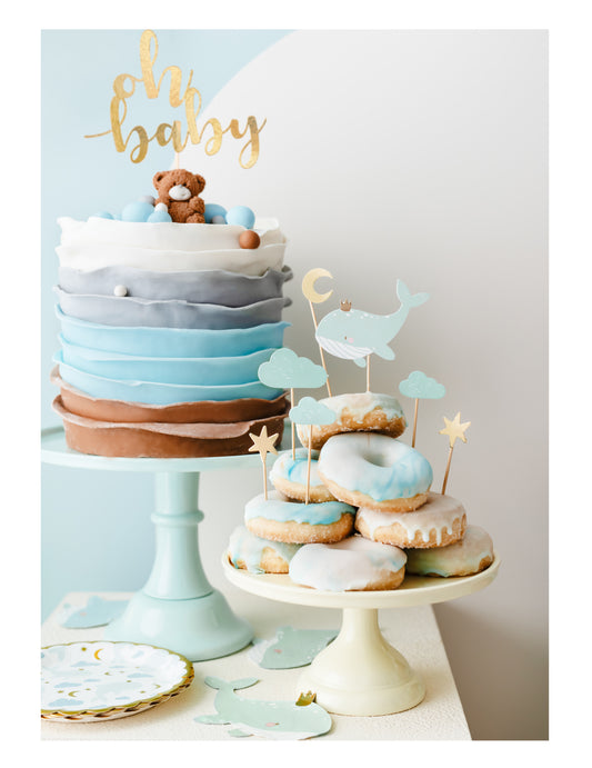 7 топера за торта „Небесно син кит“ 11 x 14 cm златен облак
