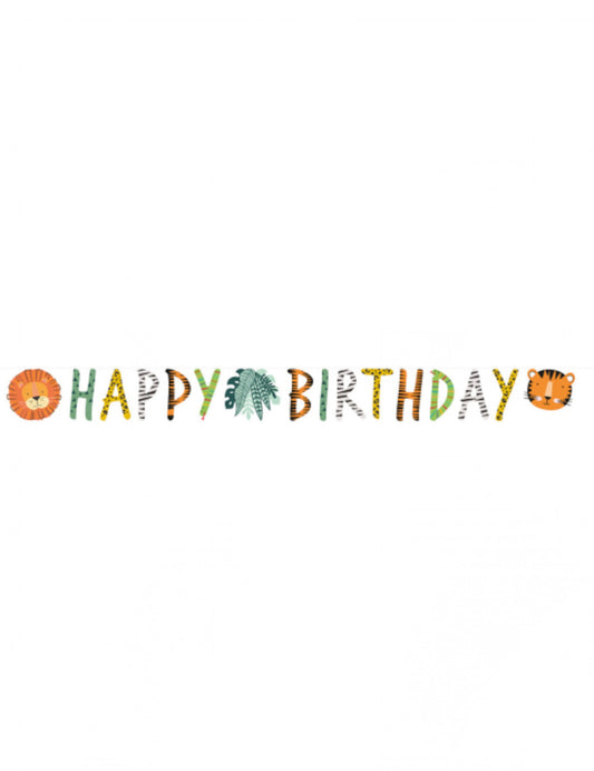 Честит рожден ден, вземи гирлянда с диво сафари 180 x 15 cm лъв и тигър