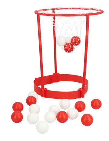 Включва: 1 лента за глава с баскетболна мрежа , 10 червени топки , 10 бели топки