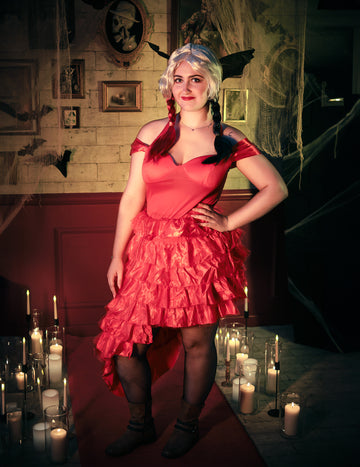 Включва: Високо , Панталони , Кейп , Колан , 2 ръкавици , 2 калъфа за обувки , Прическа