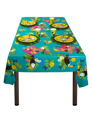 ИзчерпаноПамучен пътека за маса в тропическа джунгла, зелен цвят, 28 бр. cm x 3 м