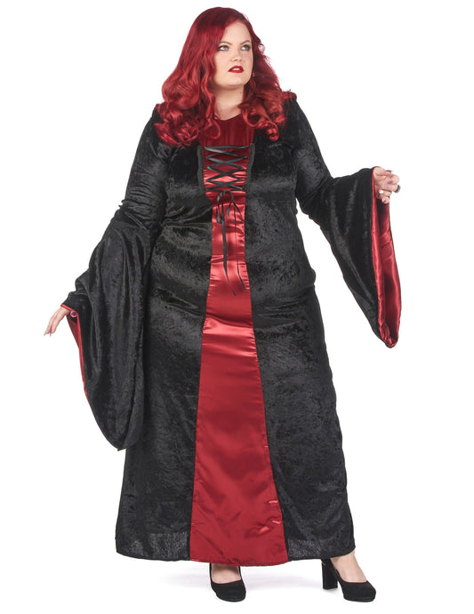 Голям костюм за готически размер с червена и черно женска качулка