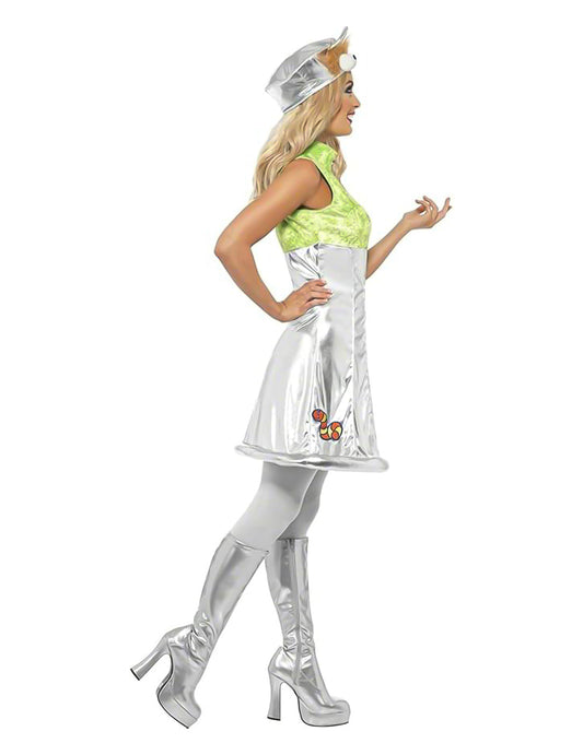 ПромоцияДамски диско костюм от 60-те и 70-те, сребристо-метален