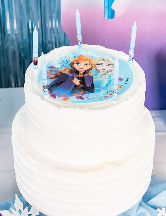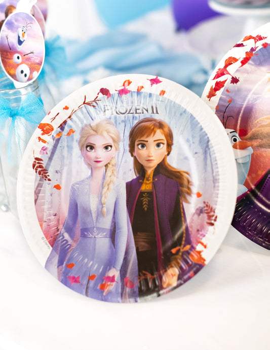 Ако дъщеря ви е фен на Frozen, какво по-хубаво от това да планирате изненадващо парти за рождения ден на Frozen? Специално за вас сме подбрали превъзходни декоративни предмети на тема Снежната кралица! Съдове за еднократна употреба с образа на Ана и Елза, гирлянди, балони и свещи, всичко е налице за успешен рожден ден. Знаете ли, че за да улесним живота ви, ви предлагаме Замразени захарни дискове и декорации? не ? Не се колебайте повече и създайте превъзходна торта за рожден ден в образа на любимата принцеса на Дисни на дъщеря ви само за няколко минути!