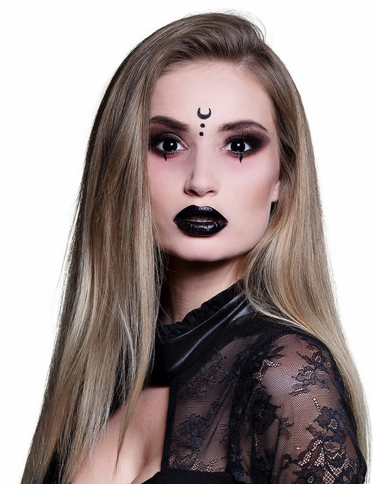 Включва: 1 черно червило, 10 фалшиви нокти череп