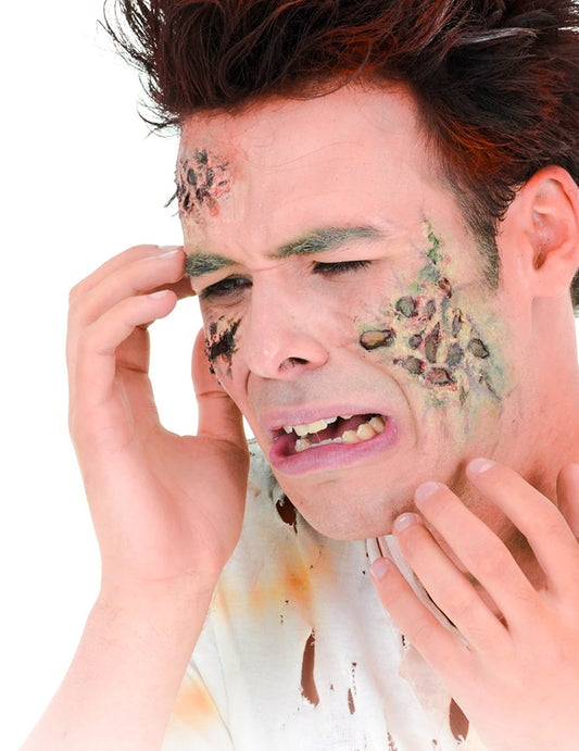Искате ли да имате зеленикав тен, мръсна кожа или дори множество белези по лицето си? Няма нужда да търсите повече, Vegaoo изпълнява всички ваши желания. Вече не е необходимо да се наричате Стивън Спилбърг, за да създавате луди специални ефекти. Благодарение на нашите многобройни комплекти аксесоари и нашия грим във всички цветове, станете истински жив мъртвец или много плашеща вещица.