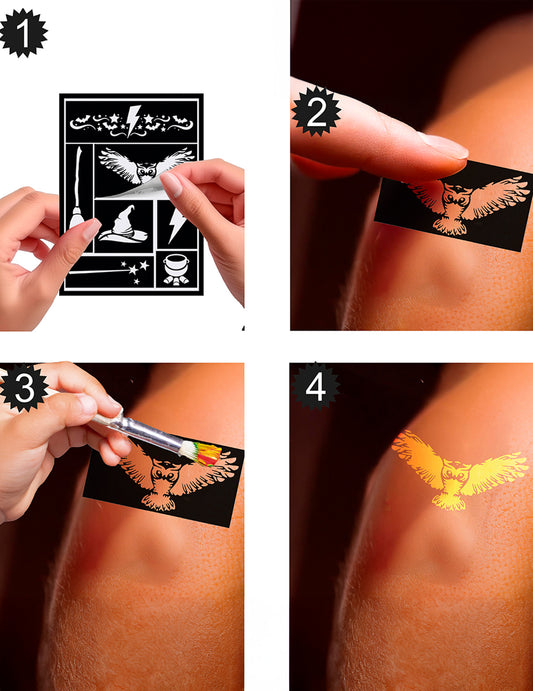 Включва: Татуировки, 1 мустаци, 1 палитра, 1 молив, 1 четка