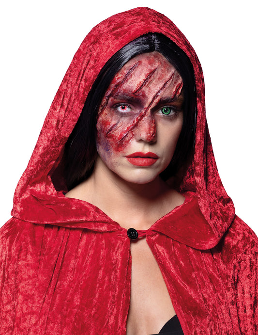 Включени: 3 Фалшиви кръвни капсули, 1 фалшива кръвна гел тръба, 3 сашета, 1 палитра 4 цвята, 1 молив, 1 четка, 2 гъби, 1 Забележка, Фалшива човешка плът, Палет 4 цвята, черен молив, Фалшива течна кръв, 2 гъби, 1 четка