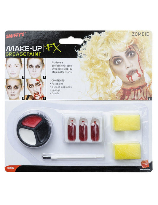 Включени: 3 цветова палитра, 3 фалшиви кръвни капсули, 1 четка, 2 гъби