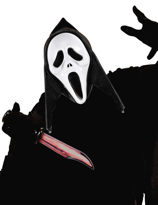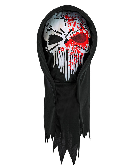В пълна качулка невидима маска за лице и възрастни червени светлини очи