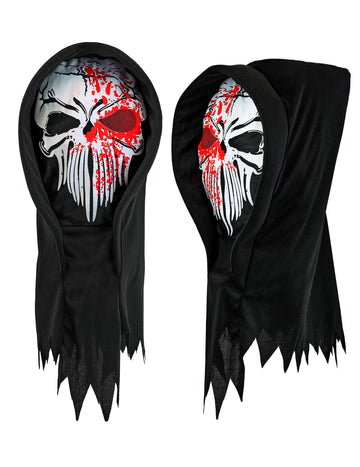 В пълна качулка невидима маска за лице и възрастни червени светлини очи