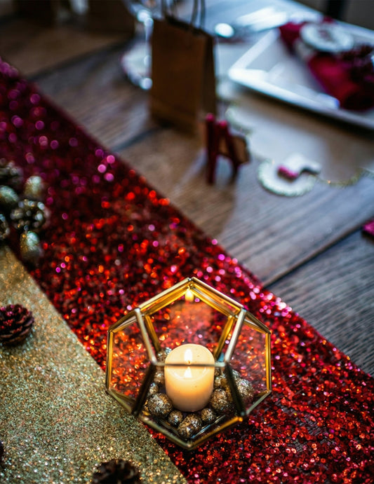 - Пътеки за маса : Добавете нотка изтънченост със сатен, дантела или пайети.