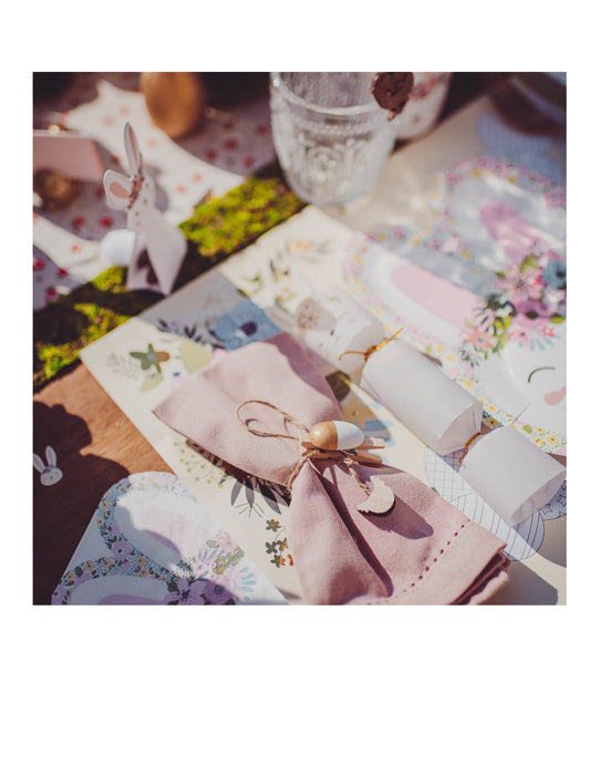 Изчерпано2 златни пръстена за салфетки с брокатени зайчета 4,5 x 8 cm за Великден