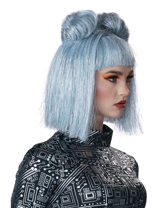 Възрастна синя метална перука